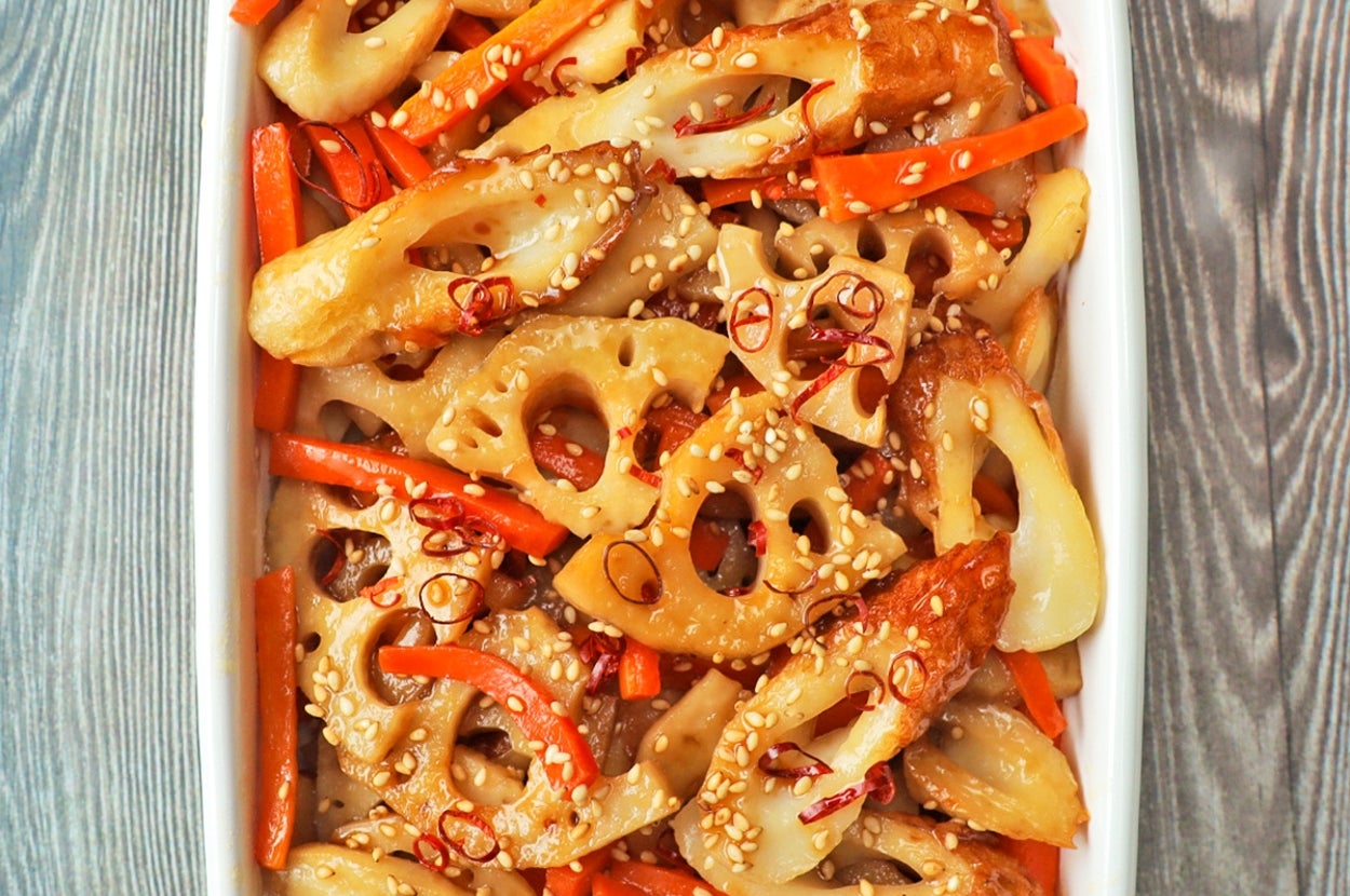 全部切って甘辛く炒め煮にするだけの「れんこんとにんじんとちくわのきんぴら」のレシピをご紹介します。