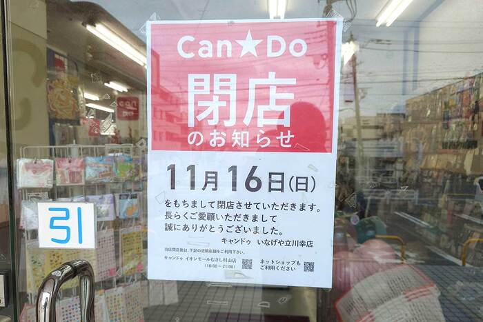 《閉店》砂川七番のスーパー『いなげや 立川幸店』にある『キャンドゥ いなげや立川幸店』が11/16(日)で閉店するみたい