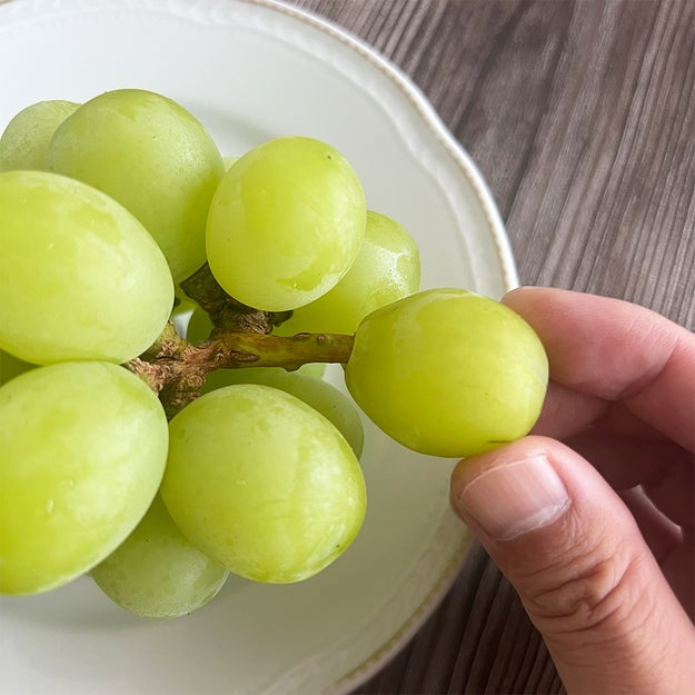 ぶどうの保存法には、軸の切り口を濡らしたキッチンペーパーで包んで保水する方法もあります。これも乾燥を防ぎ、鮮度を保つ効果があるといわれています。今回の「1粒を犠牲にして刺す方法」も、同じように軸から水分を補うことで鮮度を維持できる裏ワザ。どちらも仕組みは似ていますが、手間や保存場所に応じて使い分けられそうですね!