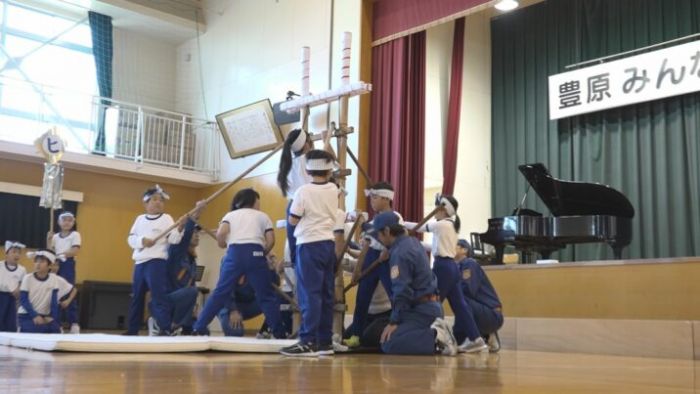 「はしごのぼり」を披露したのは、豊原小学校の3年生15人です。児童は地域の歴史や文化について学ぶなかで、「はしごのぼり」を地元の消防団が受けついで伝統を守っていることを知り、自分たちも挑戦しようと取組むことになりました。