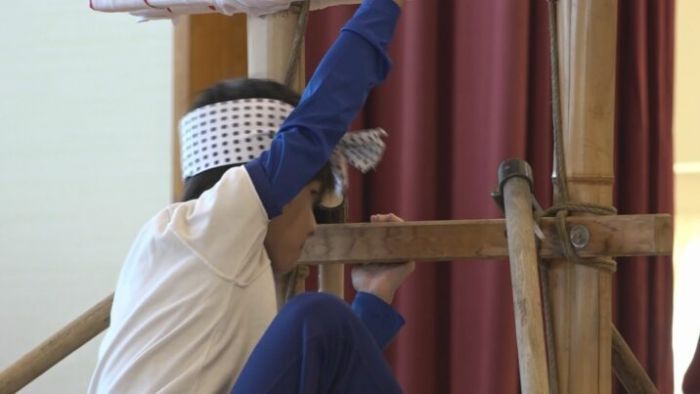 上越市立豊原小学校の3年生が6日(木)日頃の学んだ成果を発表する会で、地元板倉区で130年以上続く伝統の「はしごのぼり」を披露しました。