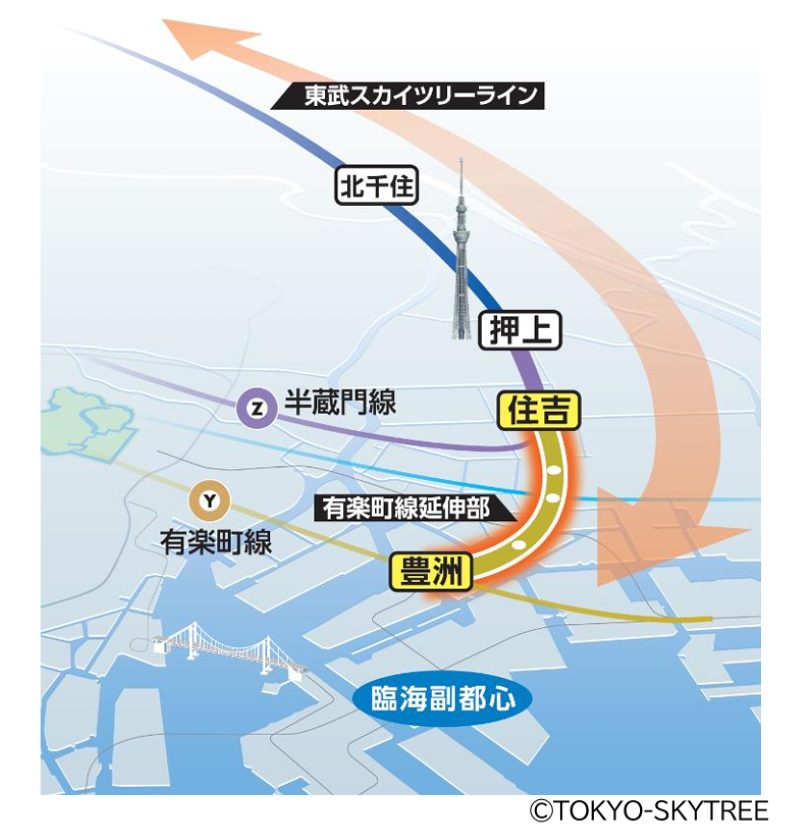 また、東京メトロと東武鉄道は、この有楽町線延伸区間(豊洲〜住吉間)の開業にあわせ、半蔵門線(住吉〜押上間)および東武スカイツリーライン・伊勢崎線・日光線との相互直通運転について基本合意したと発表しています。直通運転が実現すれば、臨海部と東京・埼玉東部のアクセス性が大幅に向上し、所要時間の短縮や乗換回数の削減が期待されます。