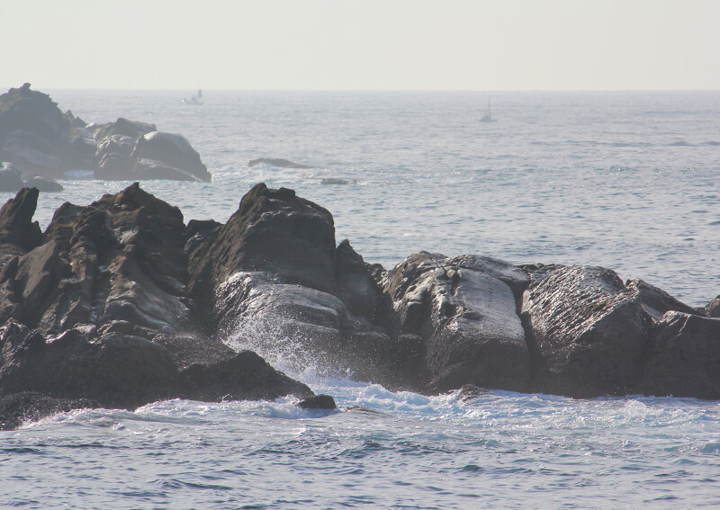 ときおり風が強くなり、沖では白波が立つことも