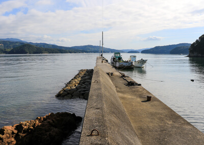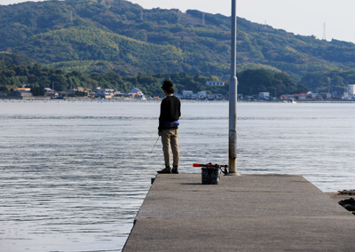 外洋向きの先端は水深がかなり深く、場所によっては水深20m以上あることも。エギではやや底取りしづらく、少々手返しが悪いといった感じです。それでも潮は多少動いており期待しましたが、残念ながらイカが追ってくるようなことはなく、釣果を得ることはできませんでした。