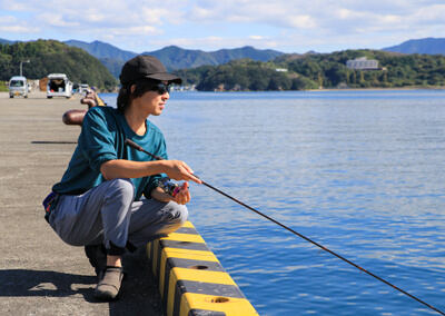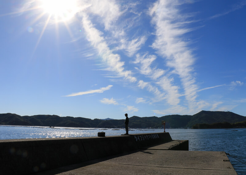 冬の訪れとともに北西風が強くなる時期ですが、愛媛県は地図でも確認できるように、四国地方のなかでも南西向きに位置しており、また、リアス式の地形を活かして、風を避けた釣り場選択がしやすい場所です。しかも、太平洋からの温かい潮が入り込みやすいため、1年を通じて水温が高く、真冬でもイカが生き延びることのできる水温環境。そんな理由から、今回愛媛県を選択しました。
