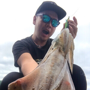 ところで、今回のような良型イカの活性が低い場面で、「スクイッドジャンキー ハグハグ」が予想以上に活躍してくれました。実際、小イカは別として、数少ない良型が釣れてくれたのはハグハグ。青物も多く潮も動かないといった渋い状況で、恐らくイカも警戒していたハズですが、そのボディ全体のシルエットやナチュラルさ、“触り心地“が功を奏したように思われます。