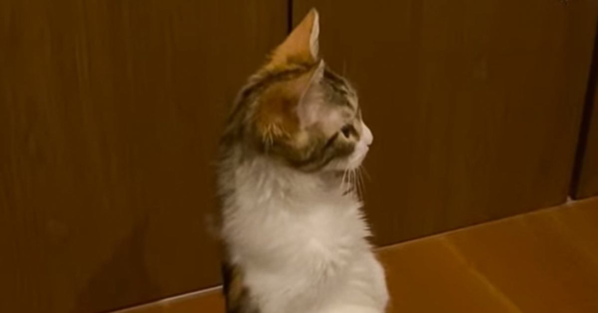 猫ちゃんの衝撃的すぎる光景が話題となっているのは、Instagramアカウントの『いちみちゃん』。ある日、三毛猫のいちみちゃんの飼い主さんは、朝早くに目が覚めてふと時計を見てみたそう。その時の時刻は4時44分。どことなく不吉な数字に不安になってしまいますが、飼い主さんの目の前には、さらに不安になってしまいそうな光景が広がっていたとのこと。その光景とは…なんと、いちみちゃんがまるで人間のように二本足で立ち、廊下をじっと凝視している姿!