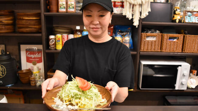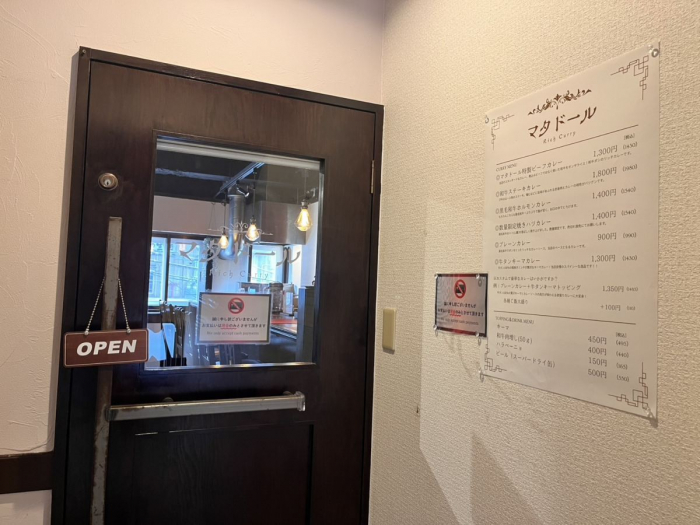 まぜそば店の真横の階段をあがると、お店の入口が見えてきました。知る人ぞ知る隠れ家的な雰囲気に、自然と気分も上がります。