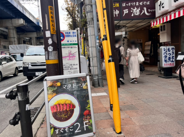 お店は、ぼっかけまぜそばで知られる『神戸灘八』のすぐ上にあります。