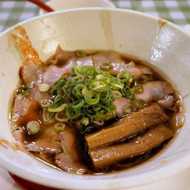 ババーンと登場、「黒しょうゆ麺」¥950なり。見た目は京都ラーメンの古典「新福菜館」のように見えるのですが、まったく違うベクトルです。ダシは多分鶏と魚介系の合わせで、濃口しょうゆと魚醤で味付けしているのですが、醤油の深みある旨味の中になんだか懐かしいような、食べたことがあるような。が!全体的には他のラーメン店にはない、どことなく洋食的な味わいが。きのこダシ?と思うようなまろやかな感覚でした。いやはや面白い。