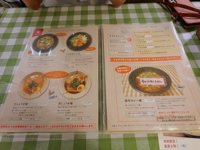 ラーメンメニューを確認するのだ。こちらがレギュラーメニューで「トリッパ入りトマト麺」、「ピリ辛まぜそば」、「白しょうゆ麺」、「黒しょうゆ麺」が定番。ラーメンですが、洋食アレンジが効いているのが工夫。麺に合わせるご飯類が「あさりピラフ」だったりして、色々と面白いわけで。結構頻繁に季節変わりメニューを出されているのですが・・・・