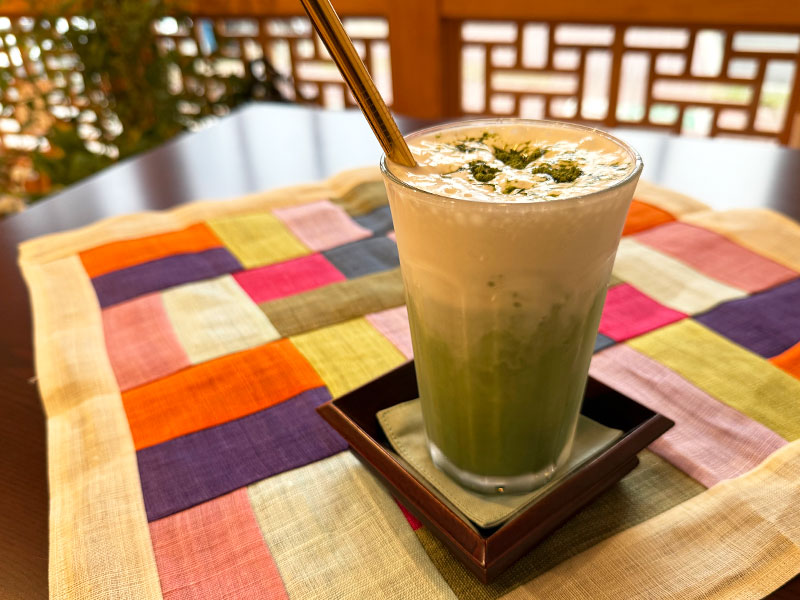 韓国の南に位置する小さな島、巨文島産のよもぎを使用したよもぎ茶ラテ。見た目は、淡い緑色とミルクの白の二層が美しい。よもぎ独特の苦味はあまりなく、爽やかな味わいでとても飲みやすく、万人に受け入れられる美味しさです。