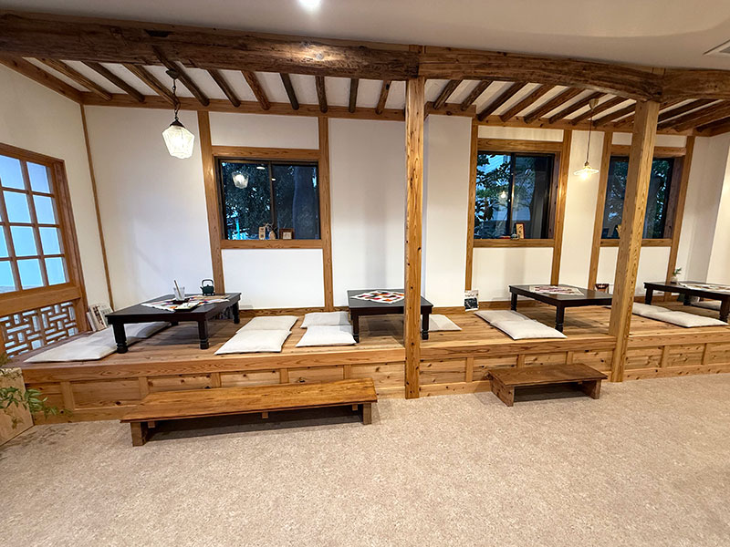 2025年7月、静岡市葵区弥勒に、伝統的な韓国の雰囲気が楽しめるカフェがオープンしました。店内にはカウンター席と、小上がりの席が用意されており、建具や茶器、ファブリックからも伝統的な韓国が感じられます。