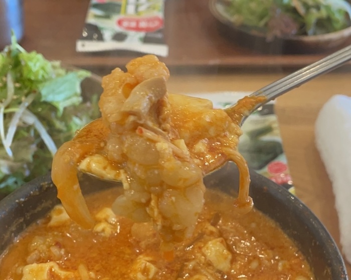 このスープにこれでもかというほど濃厚な魚介の旨味がスープにしっかりと溶け込んだ海鮮スンドゥブ。