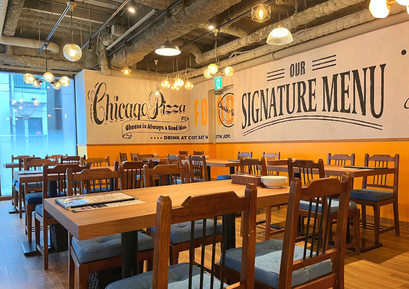 チーズをたっぷりと使った4種のシカゴピザを看板商品に、チーズを使ったパスタやチーズフォンデュなどチーズ好きにはたまらないメニューがラインナップ。