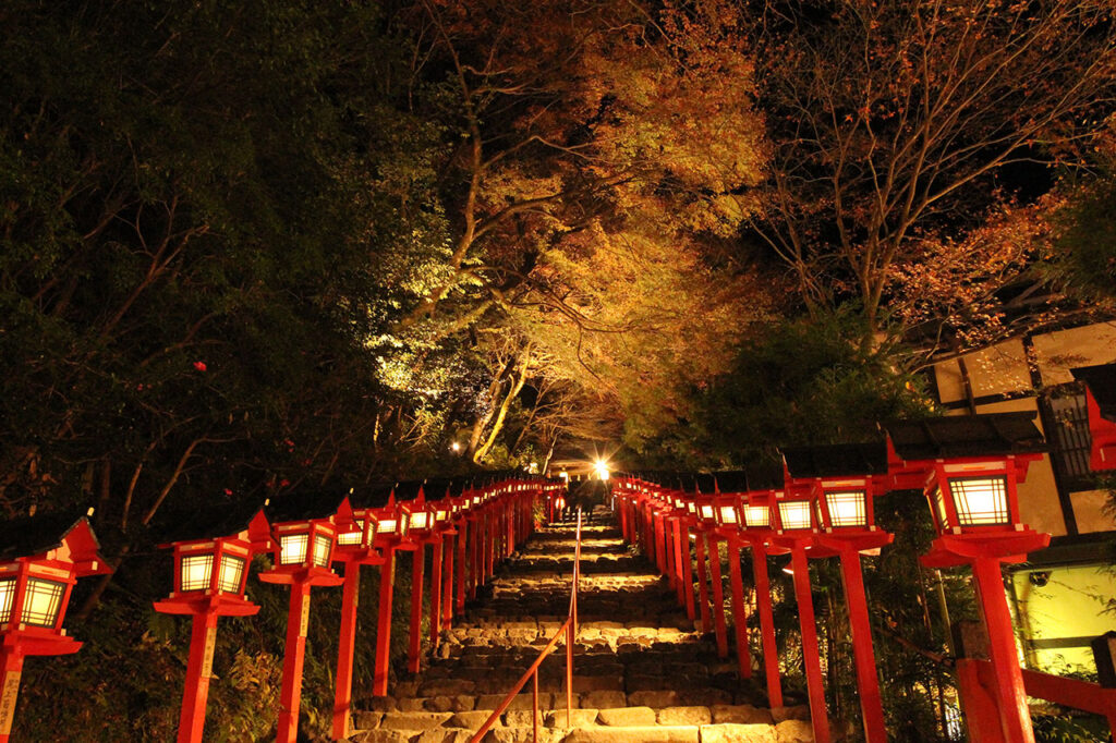灯篭の灯りが紅葉を照らすライトアップが圧巻[貴船神社]/左京区