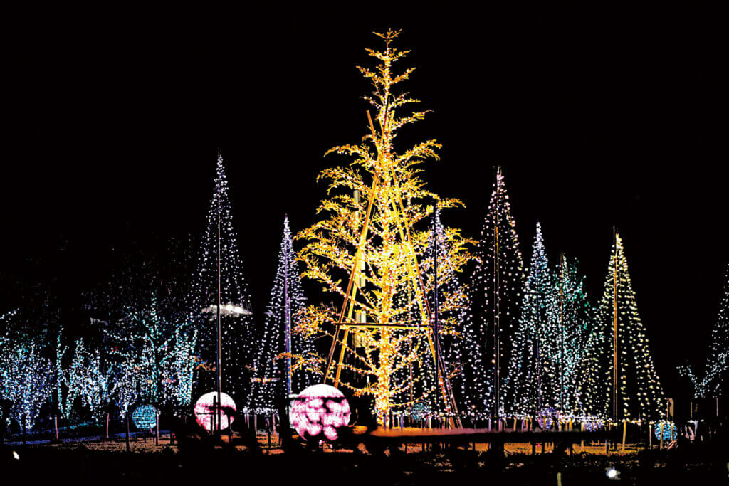 冬の澄んだ夜を照らす魔法の庭を歩こう