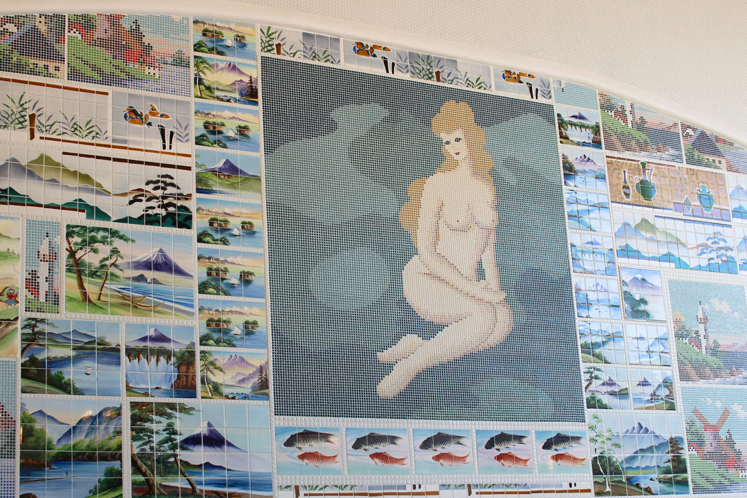 かつて一般家庭で使われていた洗面台やかまど、お風呂、銭湯の壁画など、レトロでかわいいモザイクタイルの魅力に触れられます。