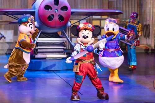 ミッキー、ミニー、ドナルド、チップとデール、さらにピートが登場。力を合わせて飛行機づくりに奮闘する1日を、歌やダンスでリズミカルに描いた新しいステージショーです。