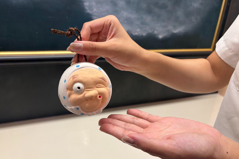 カラフルでコミカルな土鈴もあり自分好みのものを探すのがとにかく楽しかったです。 私のお気に入りはこの「ひょっとこ」 。絶妙なこの表情から奏でられるきれいな音が素敵でした。
