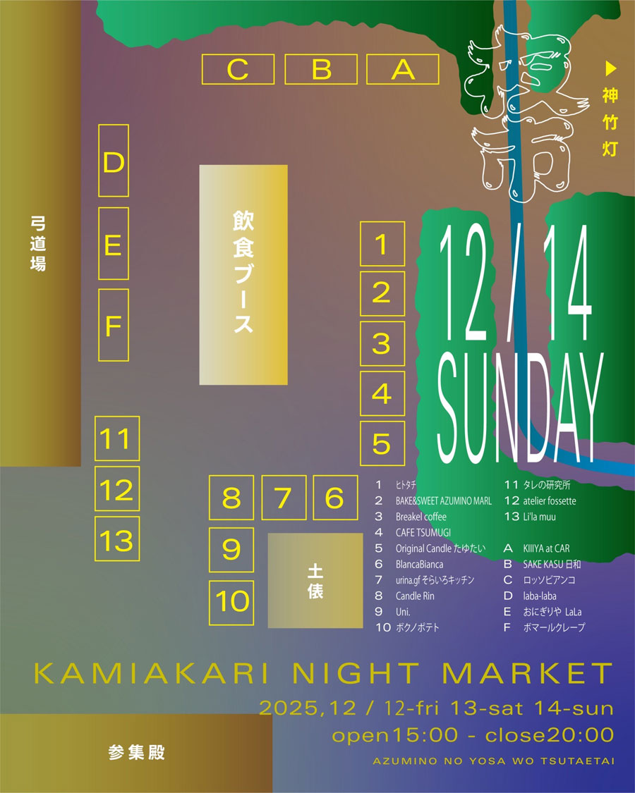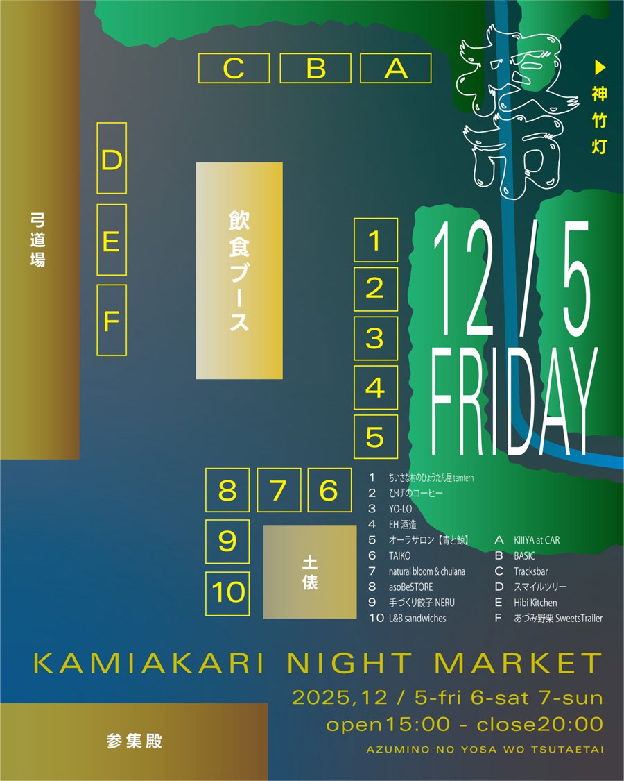 12/5(金)~12/7(日)12/12(金)~12/14(日)『カミアカリ ナイトマーケット~夜市~』開催!『安曇野神竹灯』に合わせて各日20店ほどが集結!@長野県安曇野市