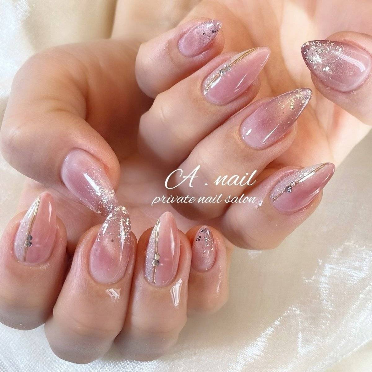 爪の先端にぎゅっと詰め込んだピンクゴールドラメは、特別感が欲しいときにぴったりですよ♡