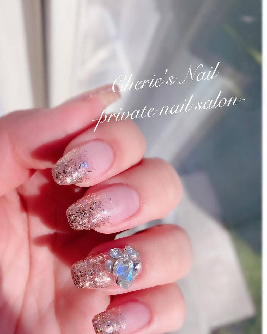 爪全体ではなく、ラメグラデーションにして抜け感を出すのがポイントです。