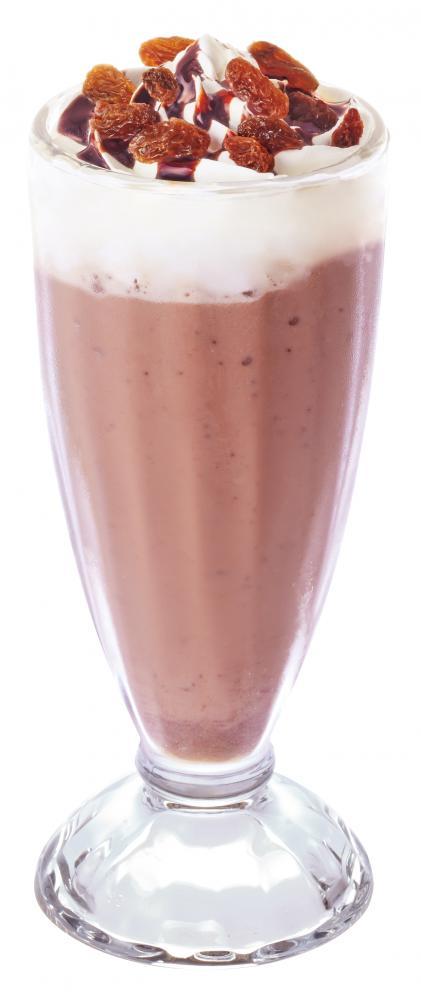 しゃりっとしたチョコ風味のフローズンに、砕いたチョコチップが食感にアクセントをプラス。ホイップとチョコソースをしっかり混ぜれば味わいに深みが増し、トッピングのレーズンとともに、さらに豊かな味わいへと変化します。