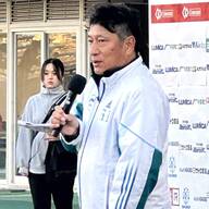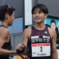 「私どもの今年のテーマは勝ち切ること。これは学生が1年間掲げてやってきました。 出雲は勝ちましたが、またこの全日本、本当に強い大学がいっぱいありますので、簡単に勝てるものじゃないという風には分かっていますけれども、もちろん初の日本一にチャレンジするつもりでこの名古屋に乗り込んでます。出雲勝ってからもチームは順調に練習を消化して、選手たちも自信を持ってスタートラインに立てるんじゃないかなと思っています。今回の私どものスローガンが『歴史を変える挑戦~EP.3~』ということで、國學院はまだ全日本、箱根を勝ったことがないです。 この全日本を勝つというのは新チーム発足当初から、私もそうですし、選手もここで日本一を獲ろうという気持ちでやってまいりましたので、今のところ順調に来ていますから、しっかりそれを、明日結果で証明していきたいと思いますし、多くの応援して支えてくれる方がいてチームは成り立ってますので、その方々にも堂々と日本一になるところを見てもらいたいと思ってます」