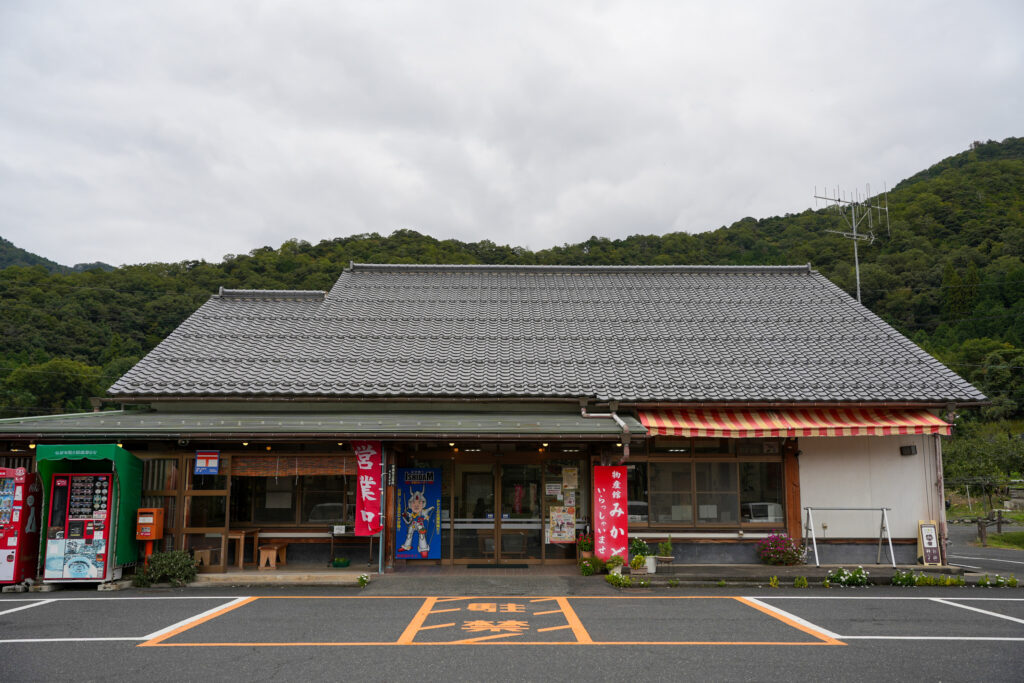そこにある瓦屋根の建物が、八頭町にある「物産館みかど」です。