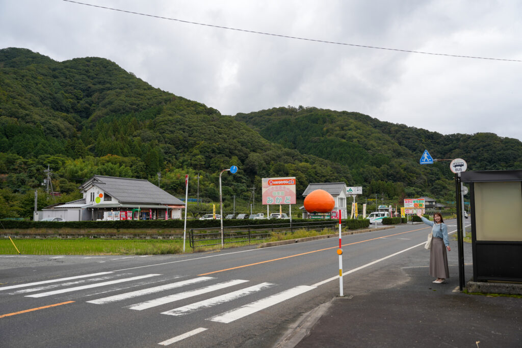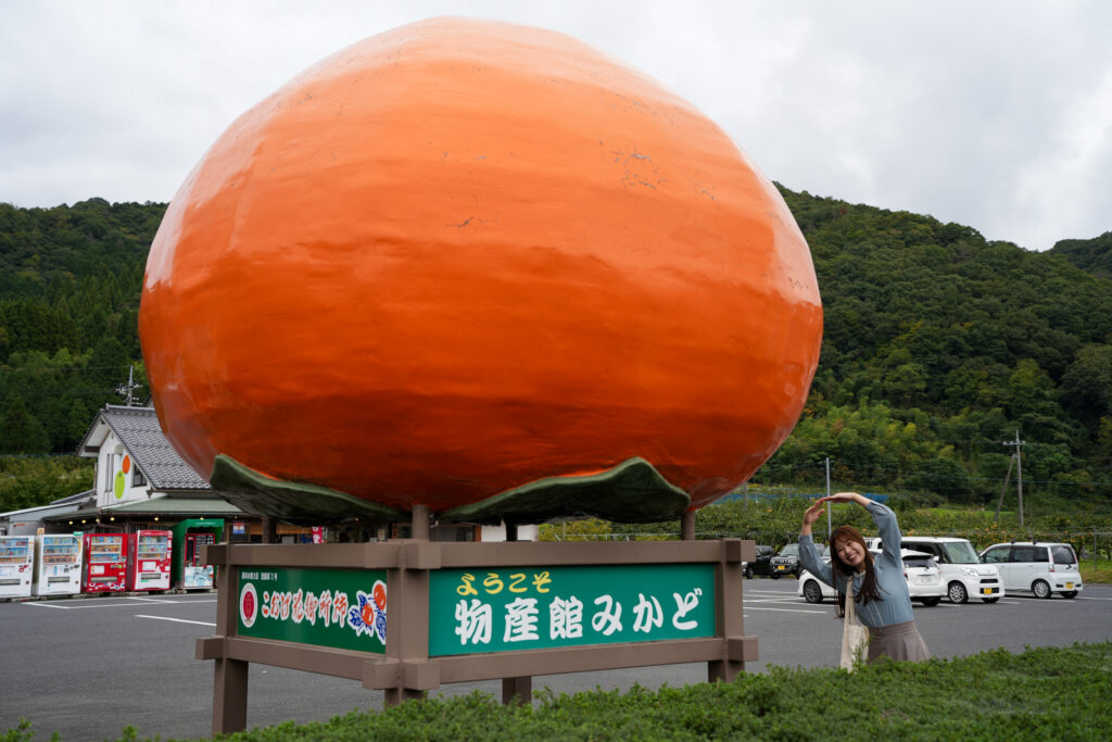 国道29号を鳥取市から南へ走っていくと、突然どーん!と現れる巨大な柿のオブジェが目に飛び込んできます。