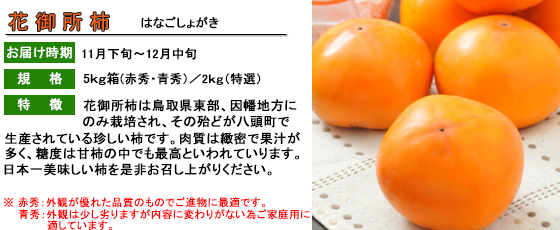 花御所柿は、鳥取県東部の因幡地方だけで栽培されており、そのほとんどが八頭町産という超レアな品種です。