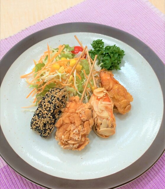 【サクサク衣】見た目と食感の違いを楽しめる♪「四種の衣の串揚げサーモン」11/12(水)放送 野股先生のレシピ