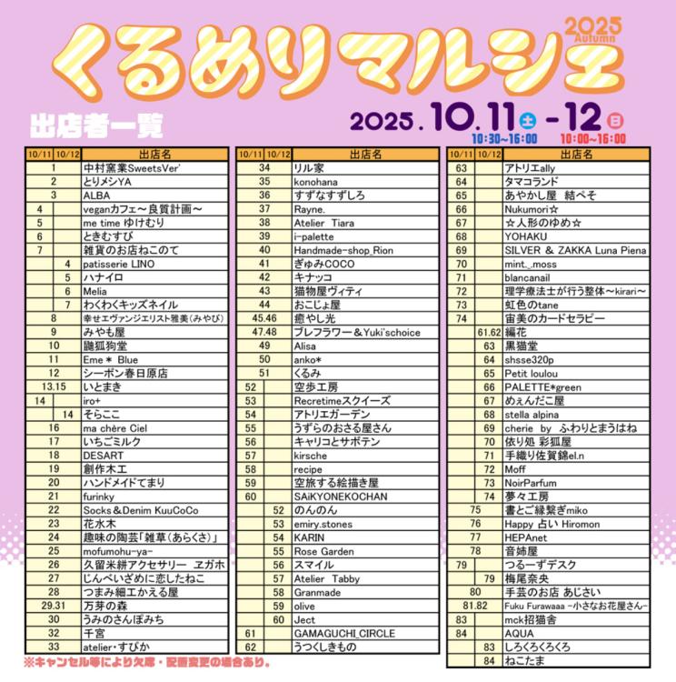 【10/11、12】ハンドメイド好きに人気!総勢109店舗が一堂に『くるめりマルシェ2025Autumn』久留米リサーチ・パークで開催【イベント】