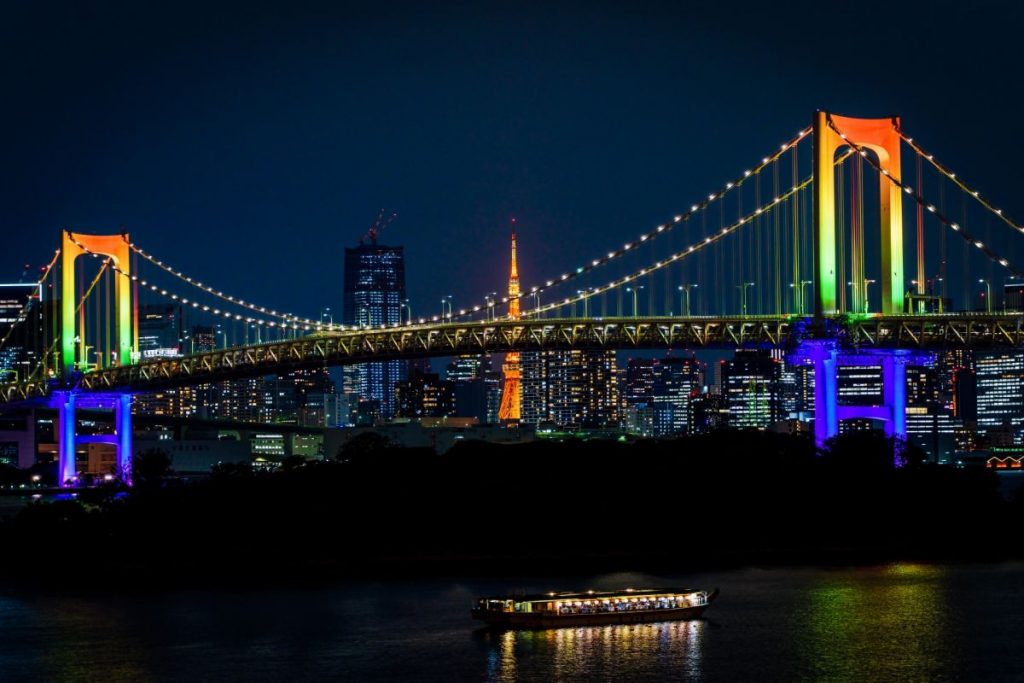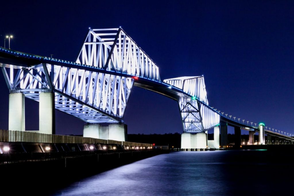鉄骨部分が白く光る東京ゲートブリッジのライトアップは、月ごとに異なるテーマカラーで輝きます。毎正時の連続照明や、国民の祝日に合わせたカラーリングのライトアップも特徴です。