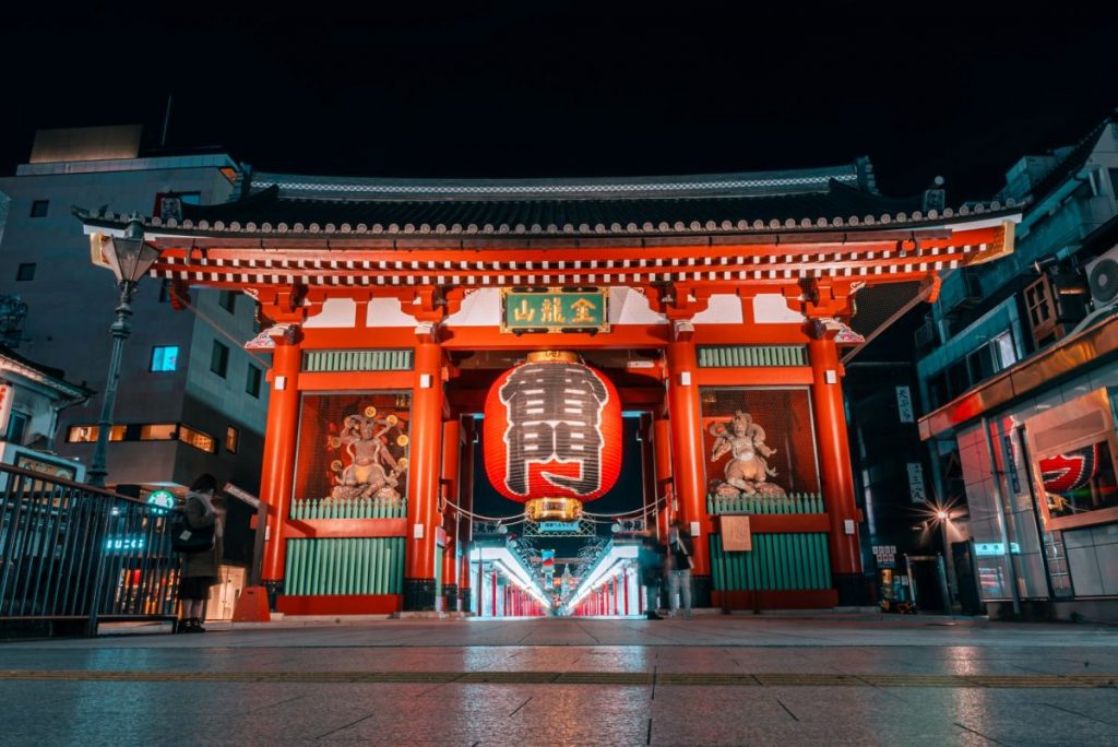 雷門のライトアップは、江戸開府400年の記念事業として2003年より始まりました。浅草寺の本堂、五重塔、宝蔵門も美しく照らされ、雷門から参道を通って本堂に至るまで華やかな風景を楽しめます。タイミングが良ければ無人の雷門を見ることもできますので、観光名所の違った表情をぜひ楽しんでください。