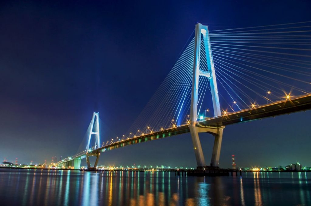 3つの橋を合わせた長さは2,628mに及び、主塔の高さは名港東大橋が130m、名港中央大橋が195m、名港西大橋が127mです。ライトアップ時のカラーリングは、名港東大橋が青、名港中央大橋が白、名港西大橋が赤となっています。季節に合わせたカラーでのライトアップも行われ、春は若葉の緑、夏は海と空の青、秋は紅葉の黄緑、冬は炎の赤が用いられます。