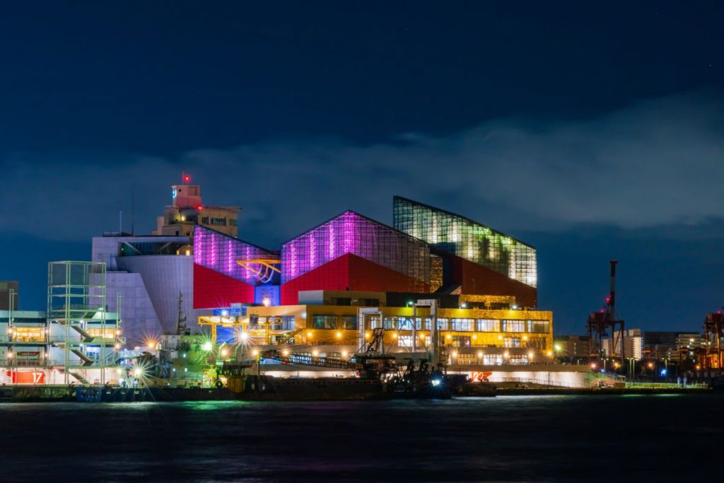 舞洲があるのは大阪市此花区の人工島で、隣の人工島・夢洲(ゆめしま)で開催される「EXPO 2025 大阪・関西万博」を応援する特別ライトアップを、2025年10月13日まで実施しています。