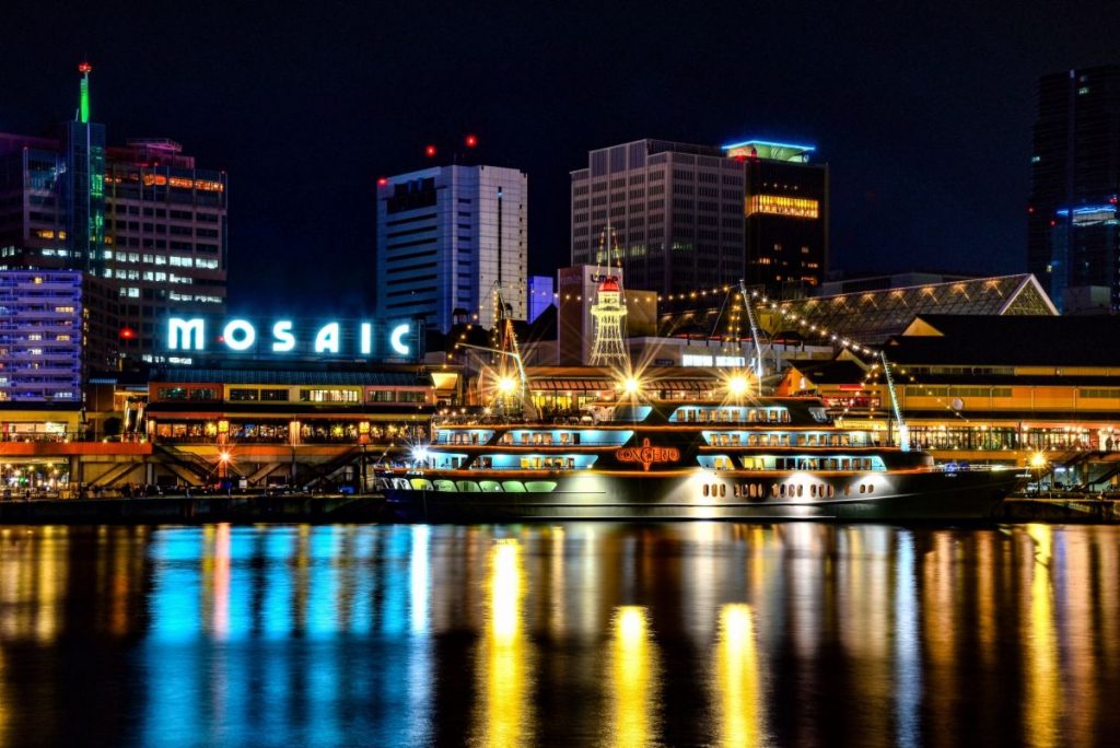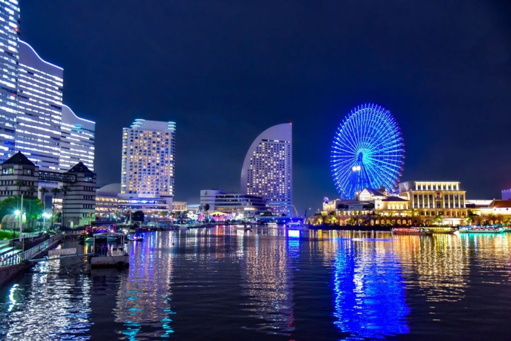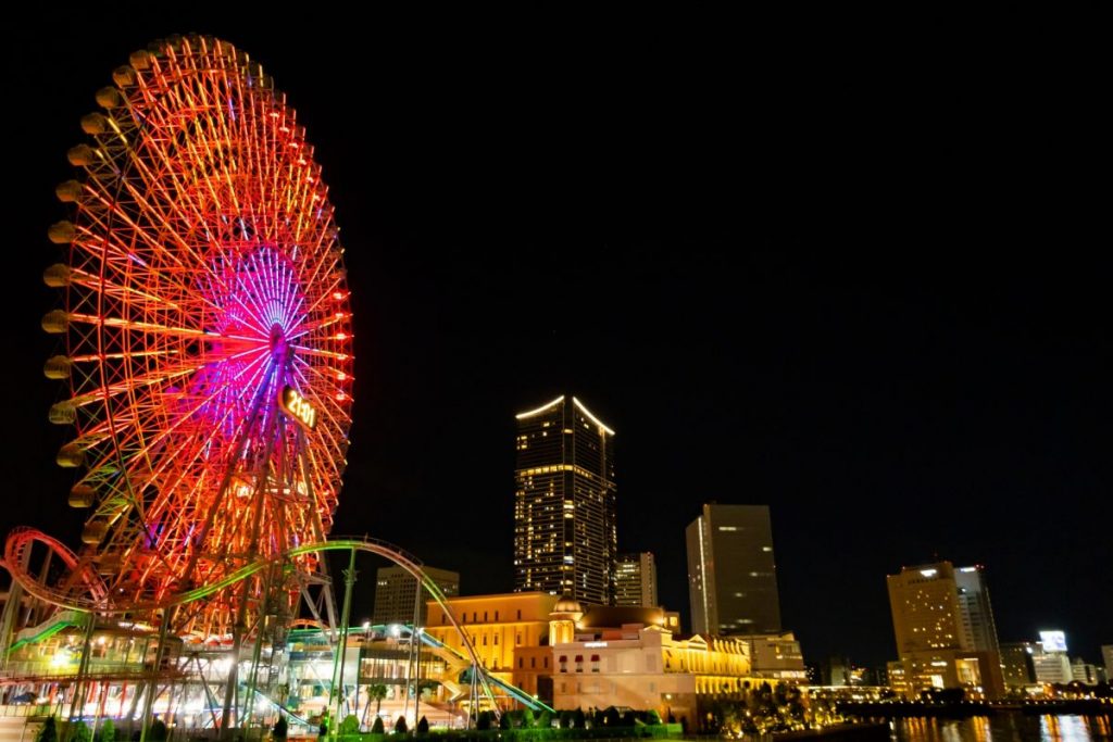 横浜を代表する夜景スポットのひとつが、みなとみらいエリアです。横浜港に面したウォーターフロントの再開発地区で、約1.86平方キロメートルの敷地にさまざまな商業施設やレジャー施設が建ち並びます。日中は賑やかで、夜にはエリア全体が美しくライトアップされ、人々の目を楽しませてくれます。