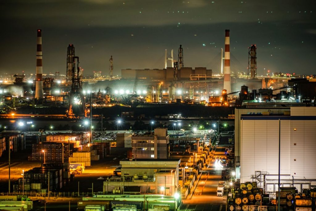 神奈川県川崎市の運河エリアにある川崎工業地帯は、工場夜景ファンに人気のスポットで、夜間も煌々と輝きながら稼働しています。主に川崎区の浮島町、千鳥町、水江町、扇町などのエリアを指し、照明がメタリックな外観に反射して輝く光景や、炎が噴き出す煙突がそびえ立つ迫力ある風景が楽しめます。