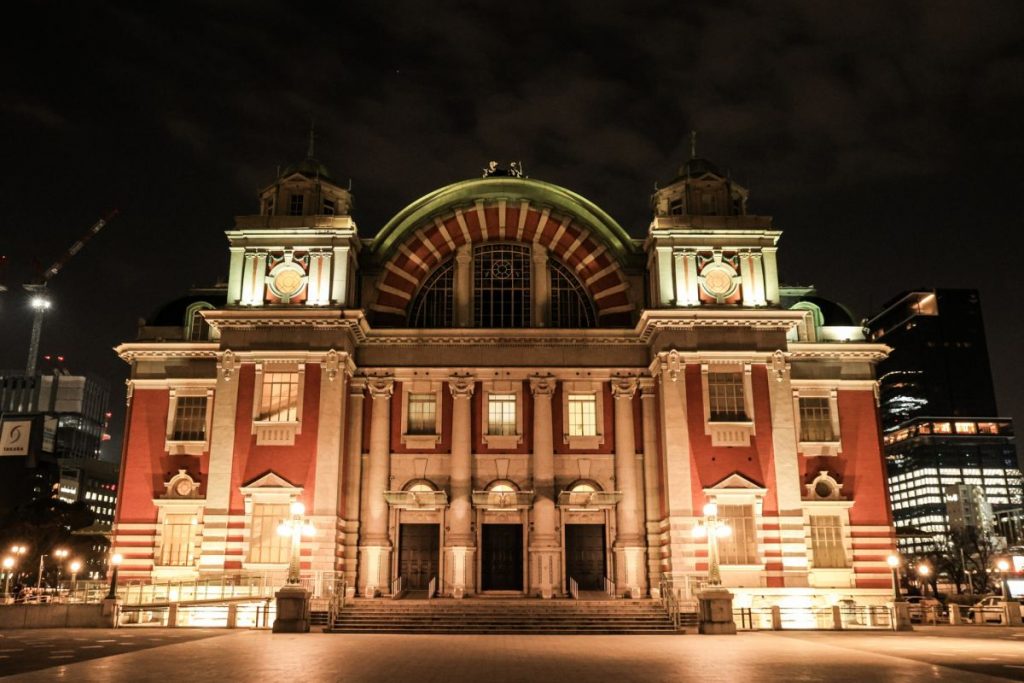 LED電球を用いつつガス燈の柔らかな明かりと調和させるような演出が行われる大阪市中央公会堂のライトアップは、その荘厳な意匠を際立たせ、建造当時の雰囲気を味わわせてくれます。日没から22時頃までライトアップを楽しめるので、中之島公園を散策しながら美しい夜景を堪能してください。