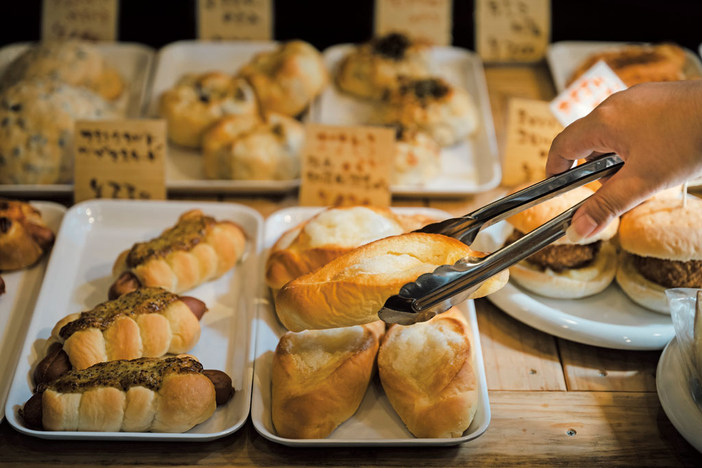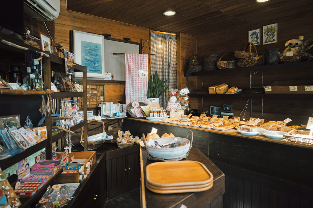 木のぬくもりあふれる店内に並ぶのは、どこか懐かしくやさしい味わいのパンたち。笑顔で迎えてくれる店主の姿も店の魅力のひとつ。地元に長く愛される店ならではの雰囲気。