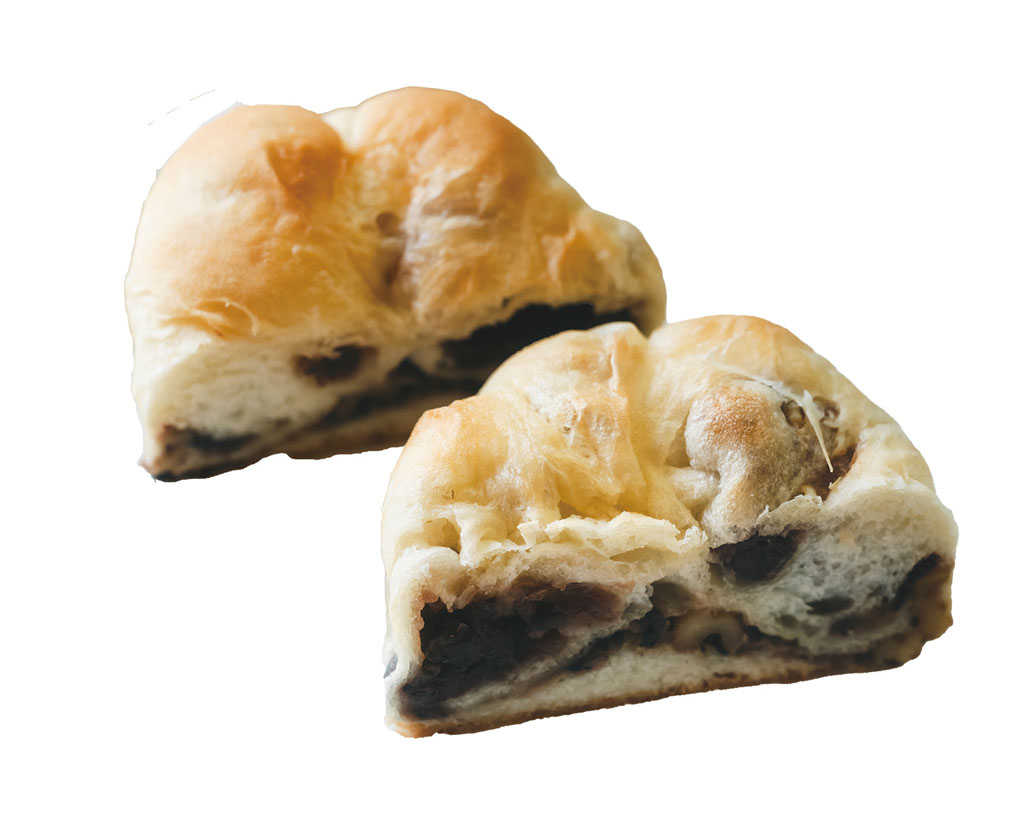 ごまあんくるみ 250円。しっとりやわらかな生地に、香ばしいごまあんとカリッとしたくるみを包み込んで。軽やかな口当たりで、和菓子のような上品さ。