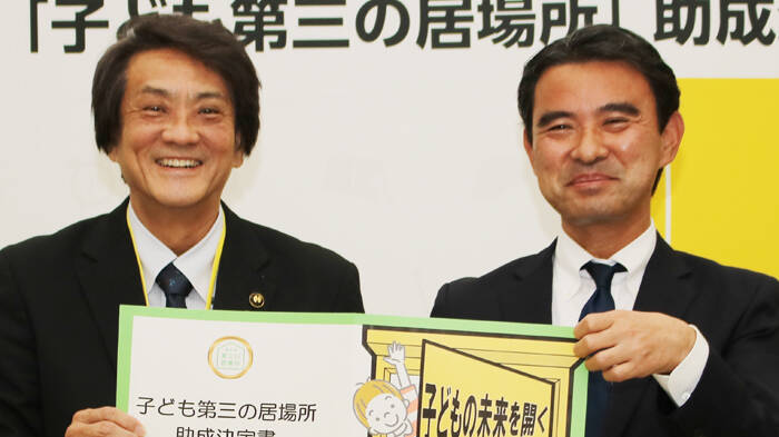 市役所であった寄贈式に県社会福祉士会の福田雅文副会長、加藤利枝監事とともに出席した廣瀬磨由子支部長は「この絵本を通して、子どもたちが社会福祉士やSSWを身近に感じ、困った時に誰かへ相談する大切さを知ってほしい」と話した。西山嘉一教育長は「学校現場ではSSWに多く助けられている。絵本はその役割をわかりやすく伝えており、有効に活用したい」と感謝した。
