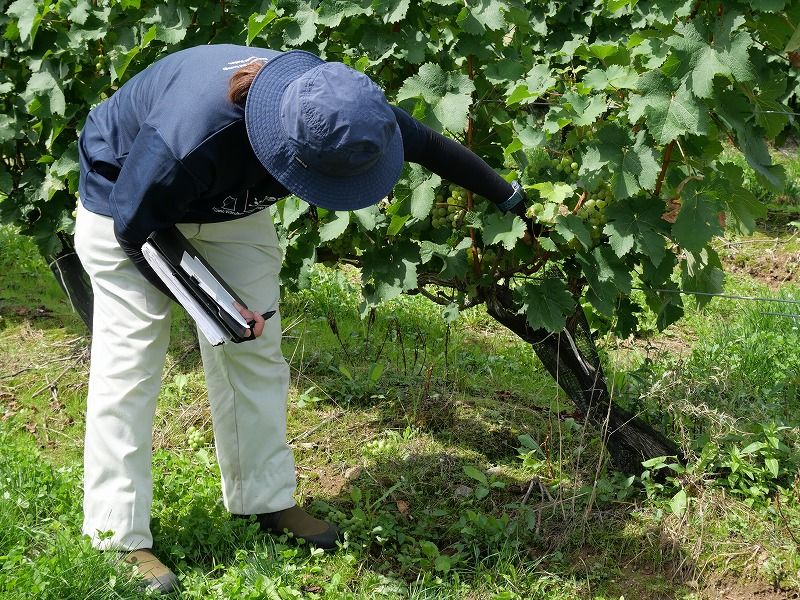醸造所を見学したのちに、少し移動して畑までやってきました。こちらには高橋氏の苗木づくりの技術を受け継いだ馬場さんという職員の方がいらっしゃいました