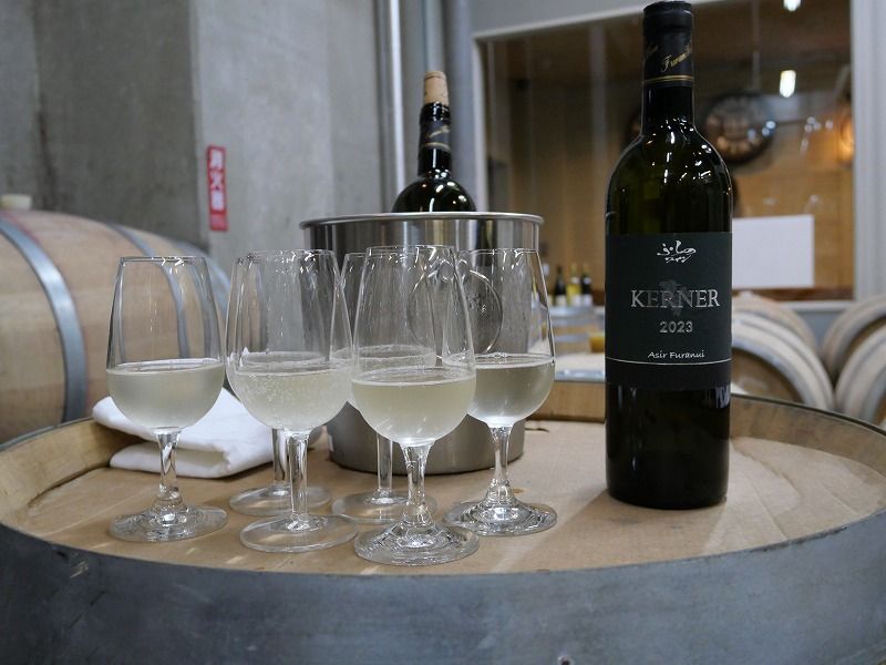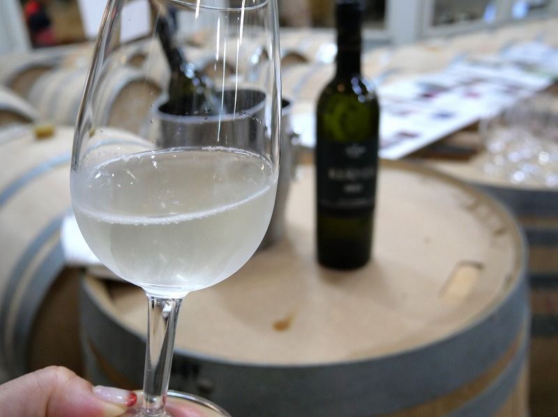 そして樽貯蔵庫では、訳アリのアシリフラヌイ ケルナー2023を、特別に頂くことに。『実は若干酵母が残っており、再発酵の危険性があるため、自主回収した商品なのです。ただ人体に害などは全くなく味はとても美味しいので、せっかくの機会なので味わってみて下さい。』