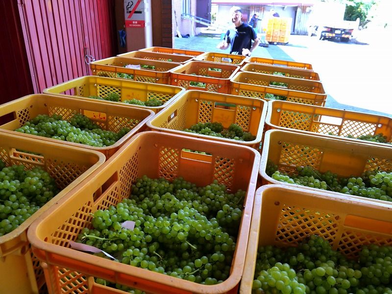 ちょうど、収穫されたぶどうが運び込まれてきていたところだったので、甘い香りに包まれました!