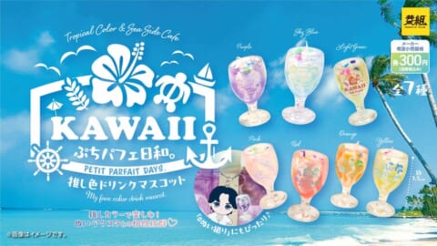 イエロー株式会社が発売を予告する「ぷちパフェ日和。 推し色ドリンクマスコット」は、推し活を楽しむ方々に向けたカプセルトイです。クリア素材とフルーツパーツを組み合わせたミニチュアドリンクとして登場し、赤・ピンク・黄・オレンジ・緑・水色・紫の定番推しカラー全7色がラインナップされています。お気に入りのキャラクターやアイドルのイメージカラーに合わせて選べるため、日常の推し活に彩りを加えるアイテムとなるでしょう。