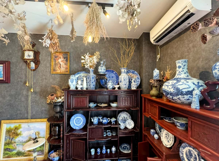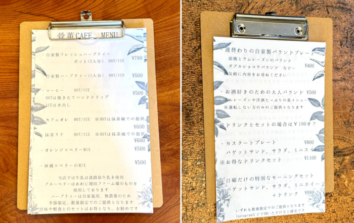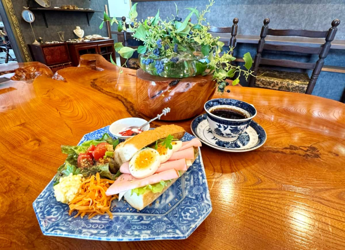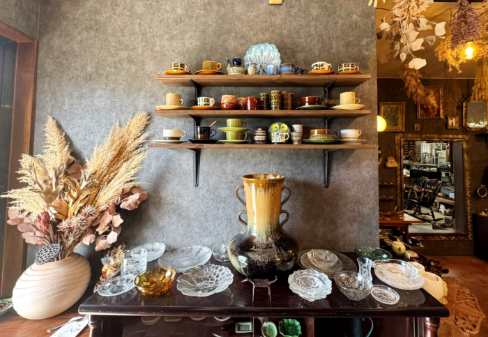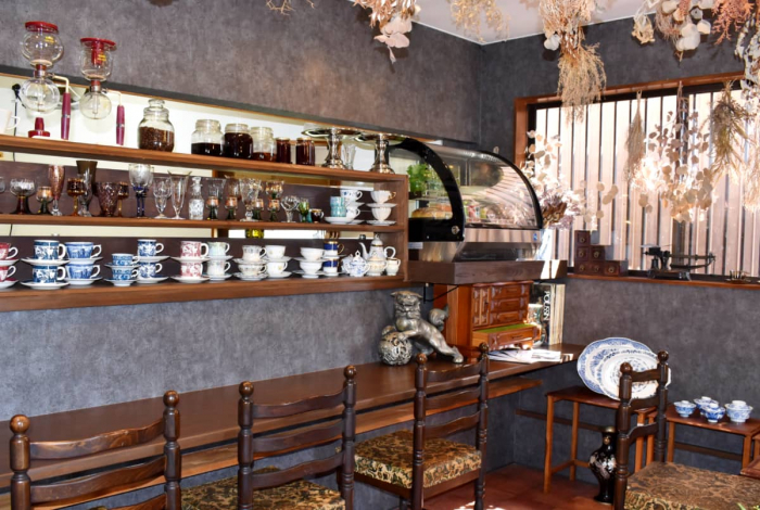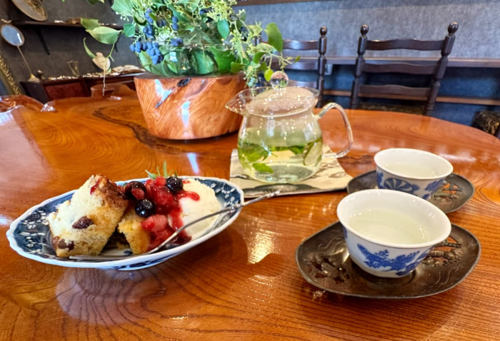 また同店には、骨董の器でドリンクや自家製焼き菓子を提供するカフェを併設。「商品を眺めながら、ゆったりと一息ついて頂けるように」と、村上店主は優しい笑顔で話します。