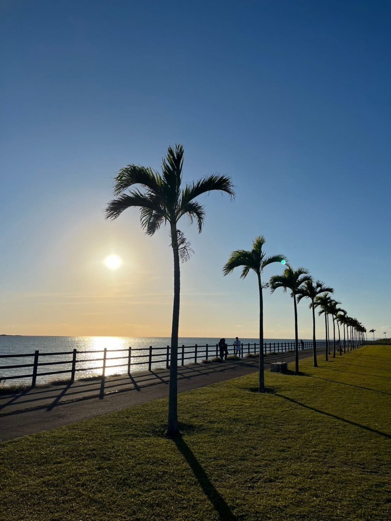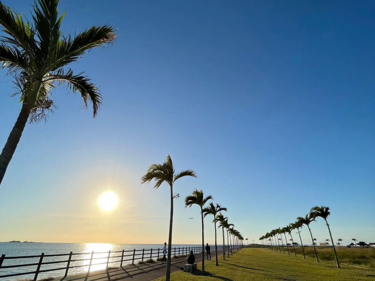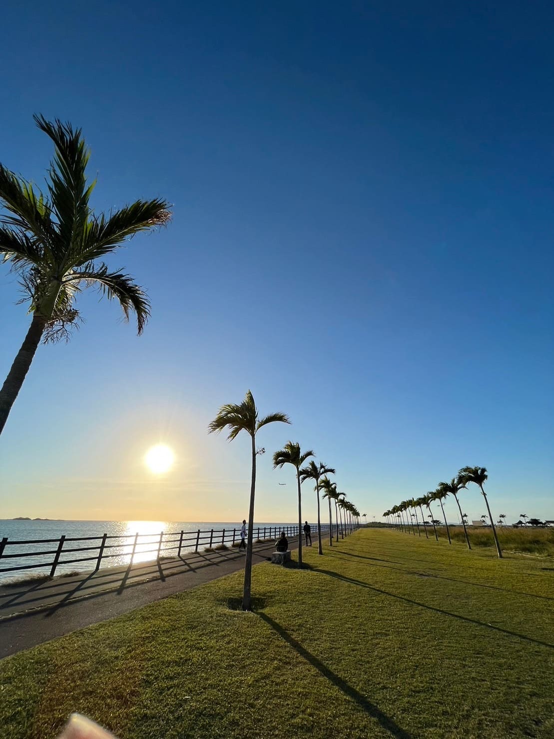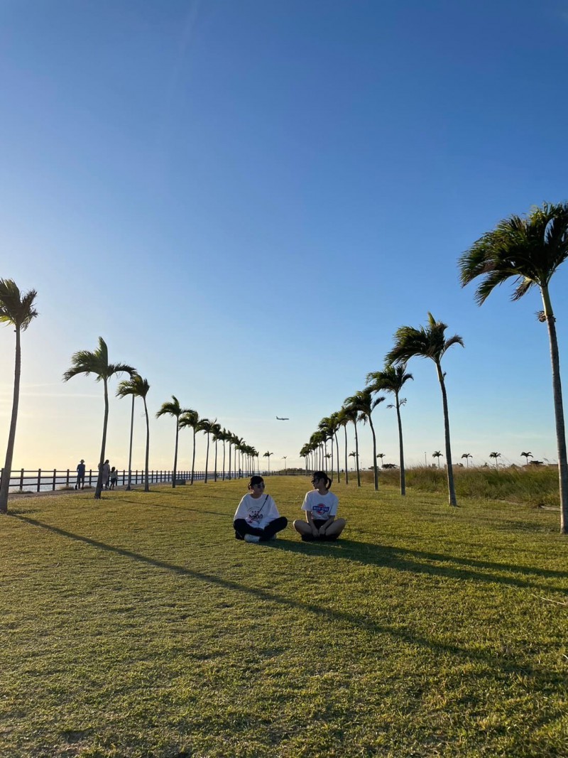 豊見城市にある豊崎都市緑地、通称ヤシの木ロードは、青い海と空とヤシ並木が共演する、これぞ沖縄!と言わんばかりの南国ムード漂う場所。